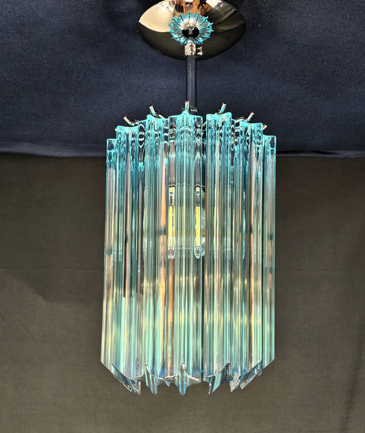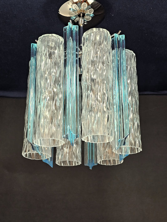 Lampada Plafoniera Vintage Murano, stile Venini, anni'70. Vetri prismi di Murano in cristallo colore acquamare. Designed and Made in Italy.