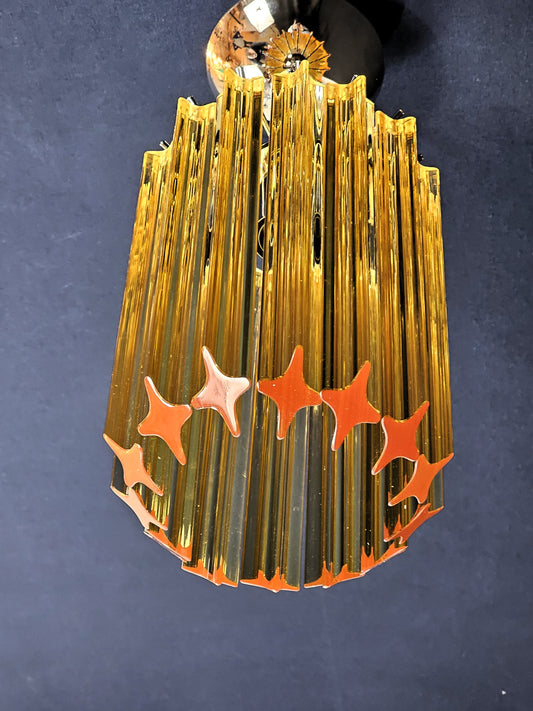 Lampada Plafoniera Vintage Murano, stile Venini, anni'70. Vetri prismi di Murano in cristallo colore ambra. Designed and Made in Italy.