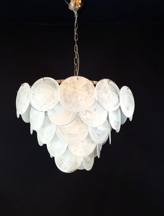 1981 Vintage Murano Disc Chandelier with handmade Alabaster Disc Glass, made in Murano, Venice, Italy