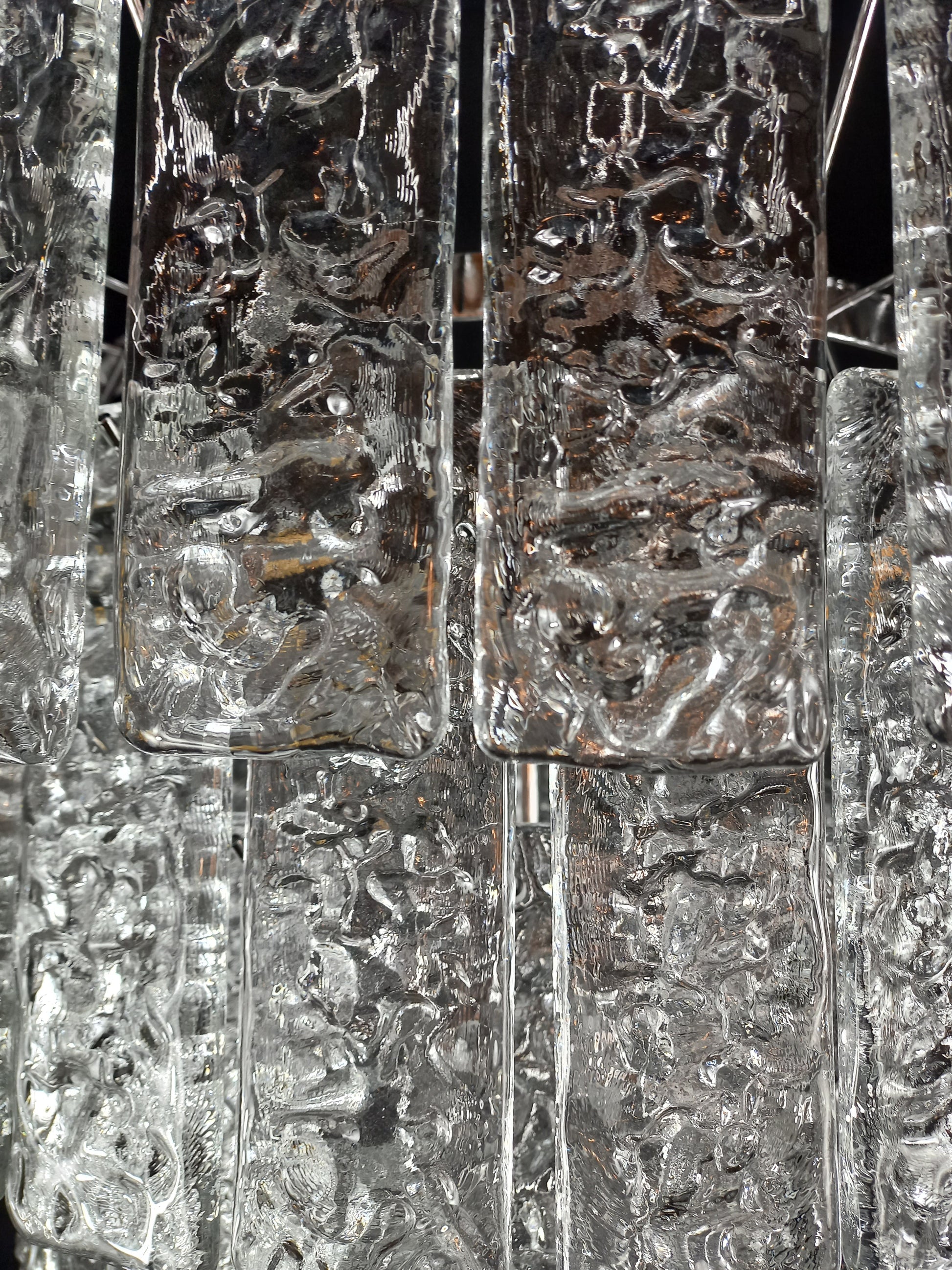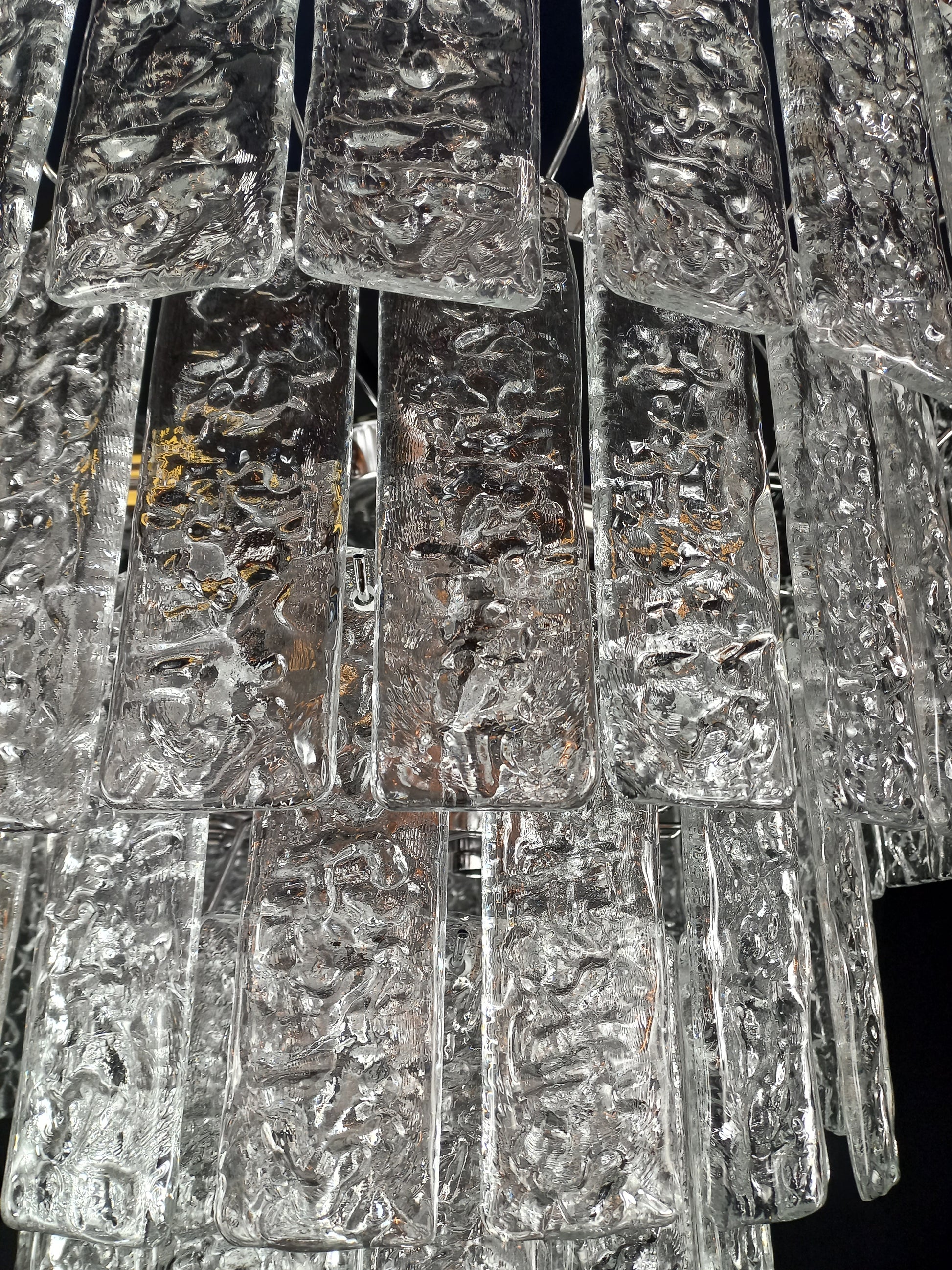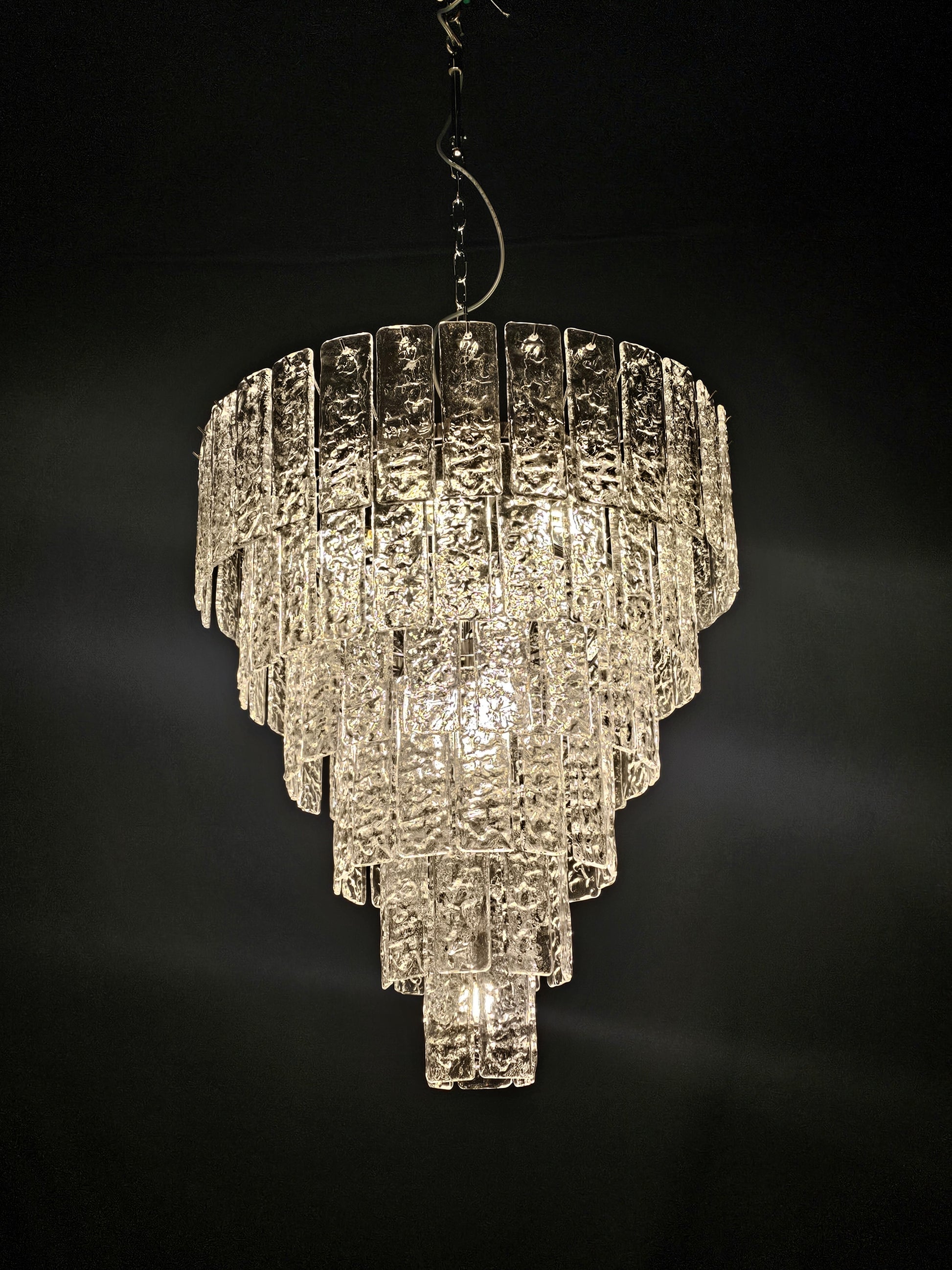 Lampadario artigianale di Murano, con Vetri listelli di Murano fatti a mano, in cristallo con trama martellata. Designed and made in Venice, Italy.