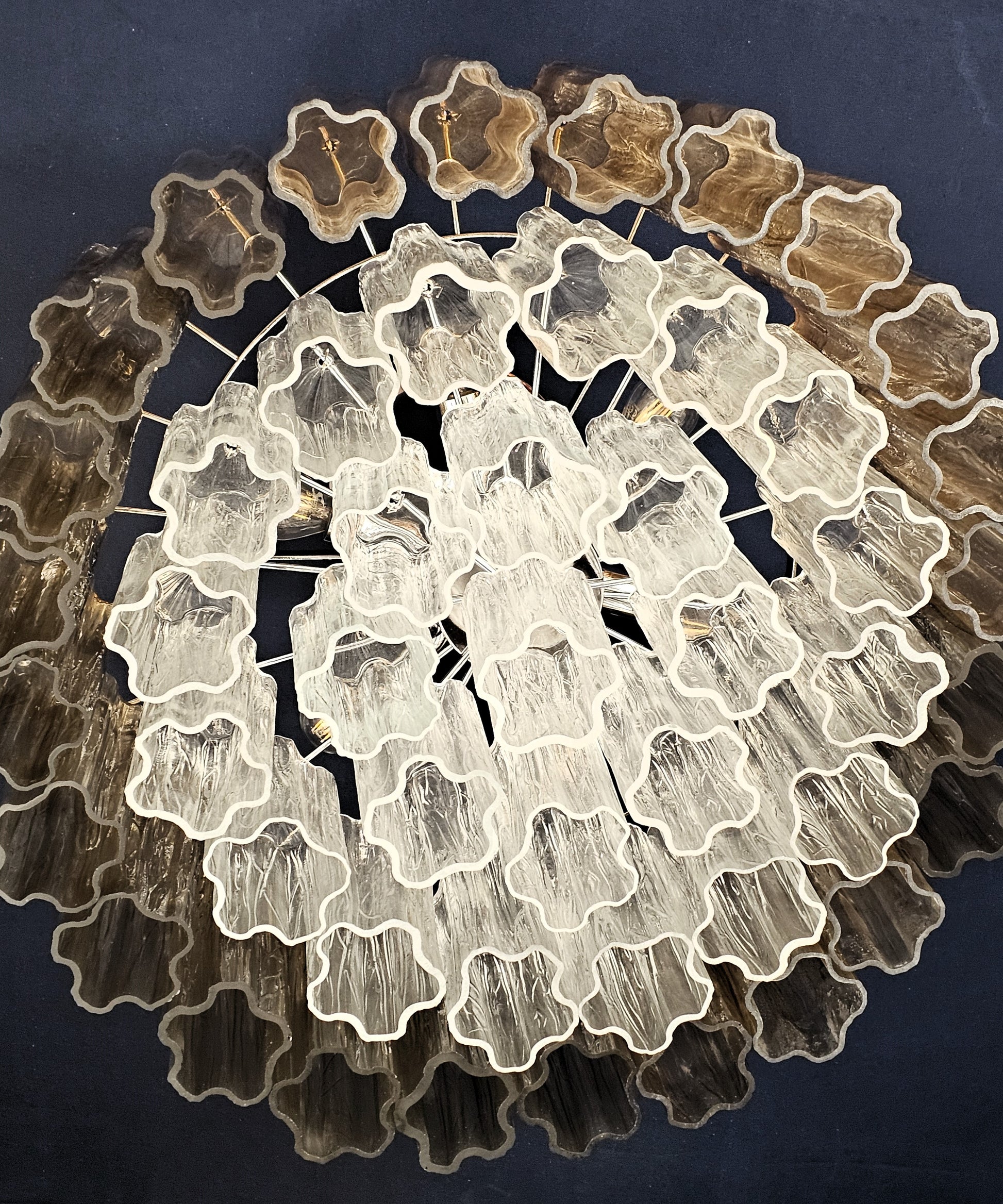Lampadario di Murano a vetri tronchi fatti a mano. Vetri tronchi cristallo e fumè. Made in Murano, Venezia Italy