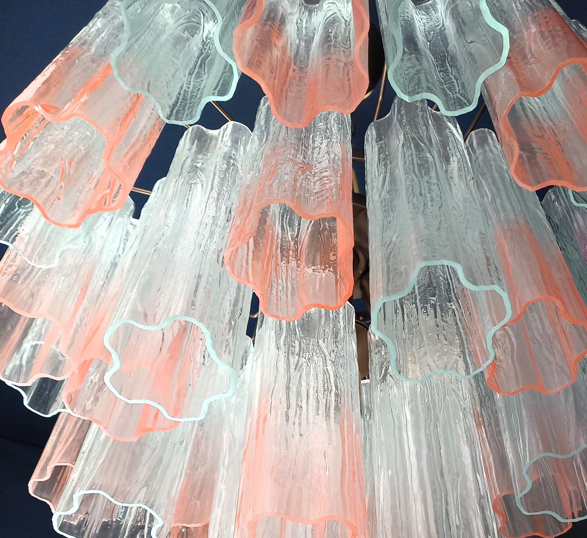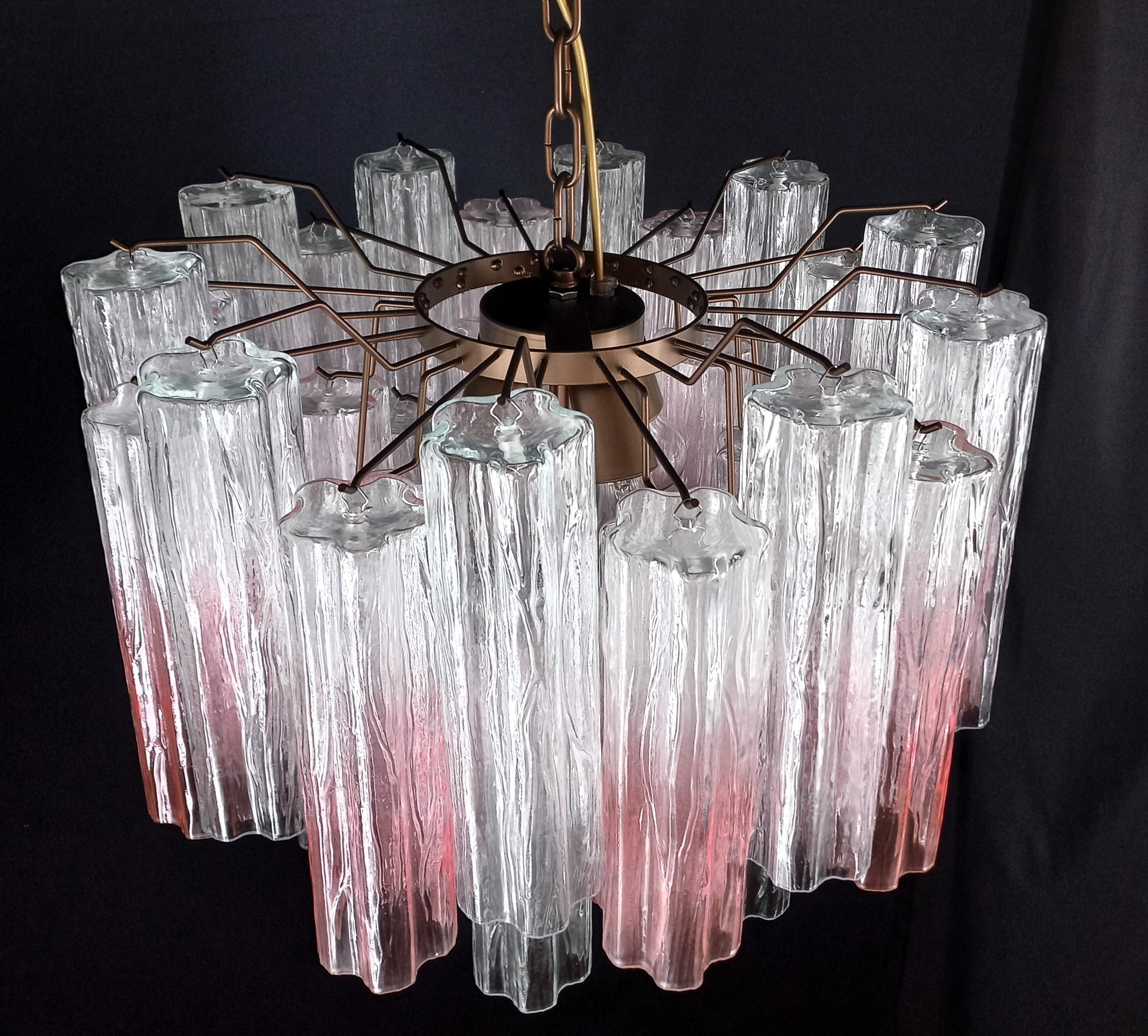 Lampadario di Murano con Vetri di Murano tronchi in cristallo sfumato rosa. Designed and Made in Venice, Italy