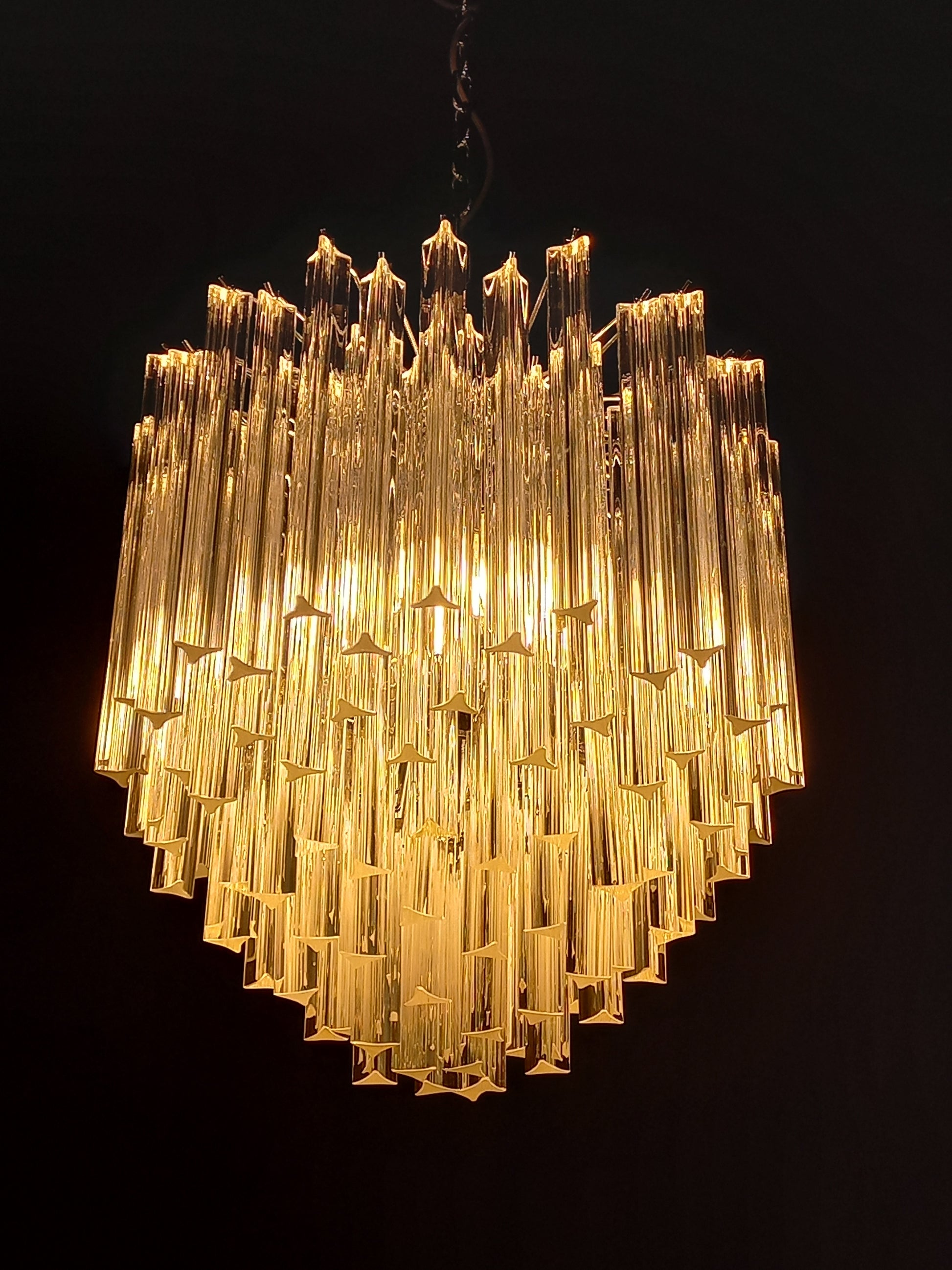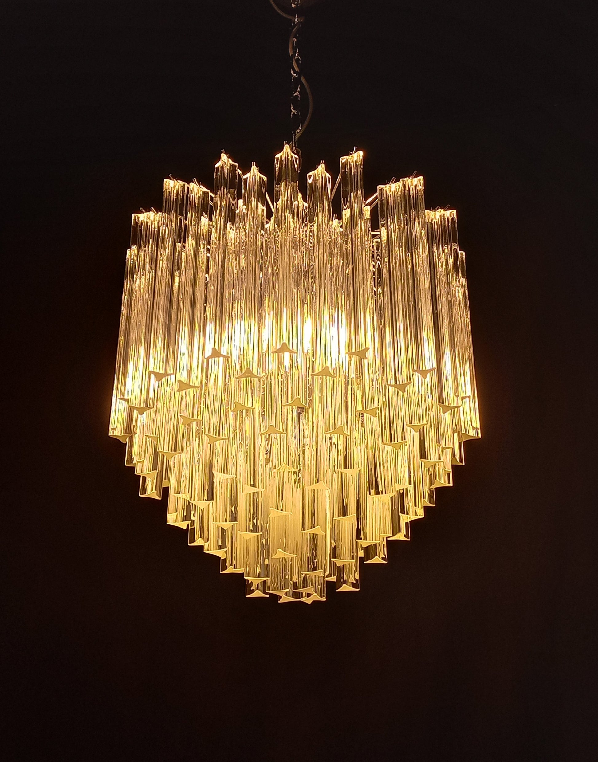 Lampadario di Murano con vetri triedri in cristallo, fatti a mano. Designed and Made in Murano, Venezia.