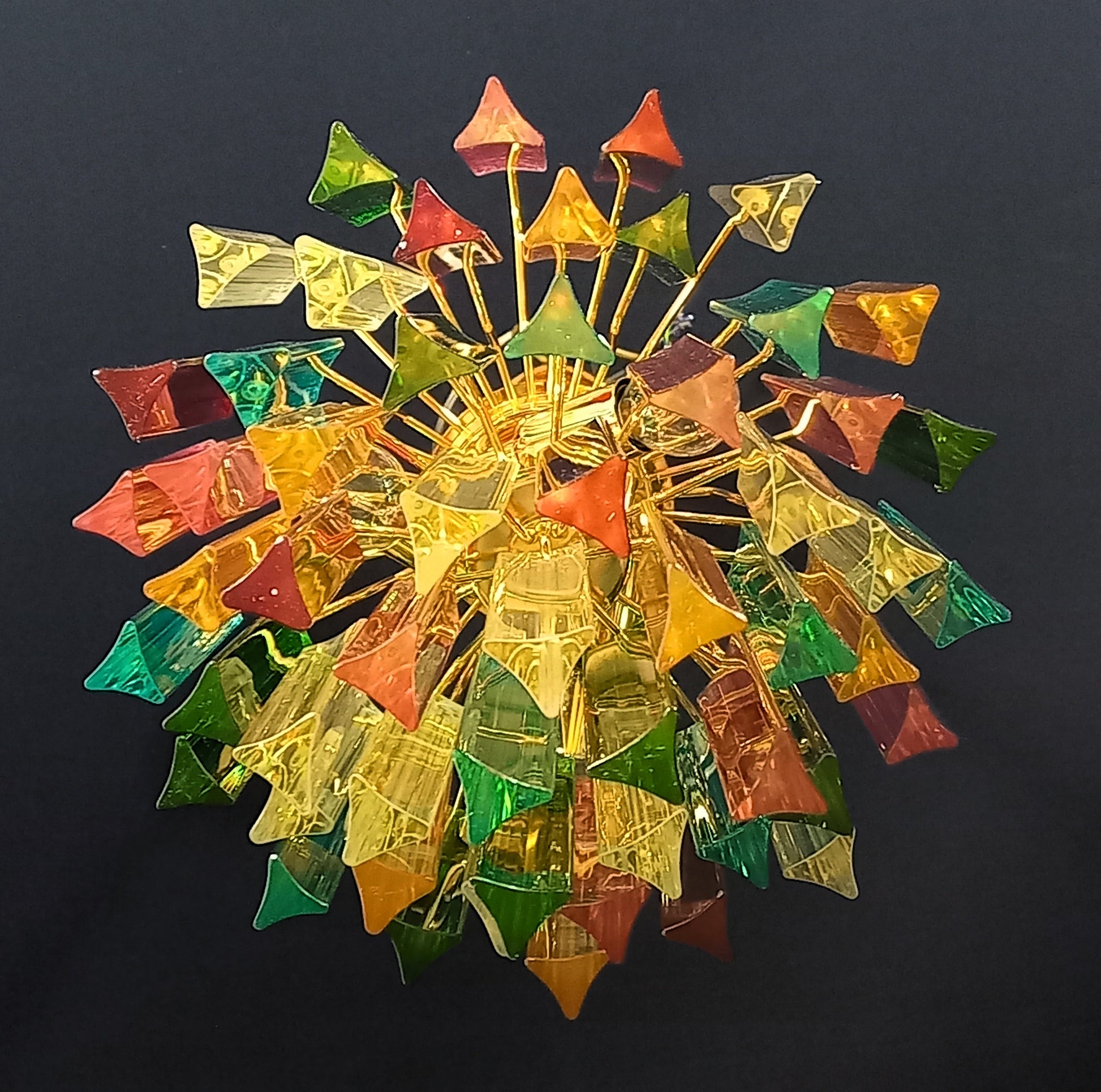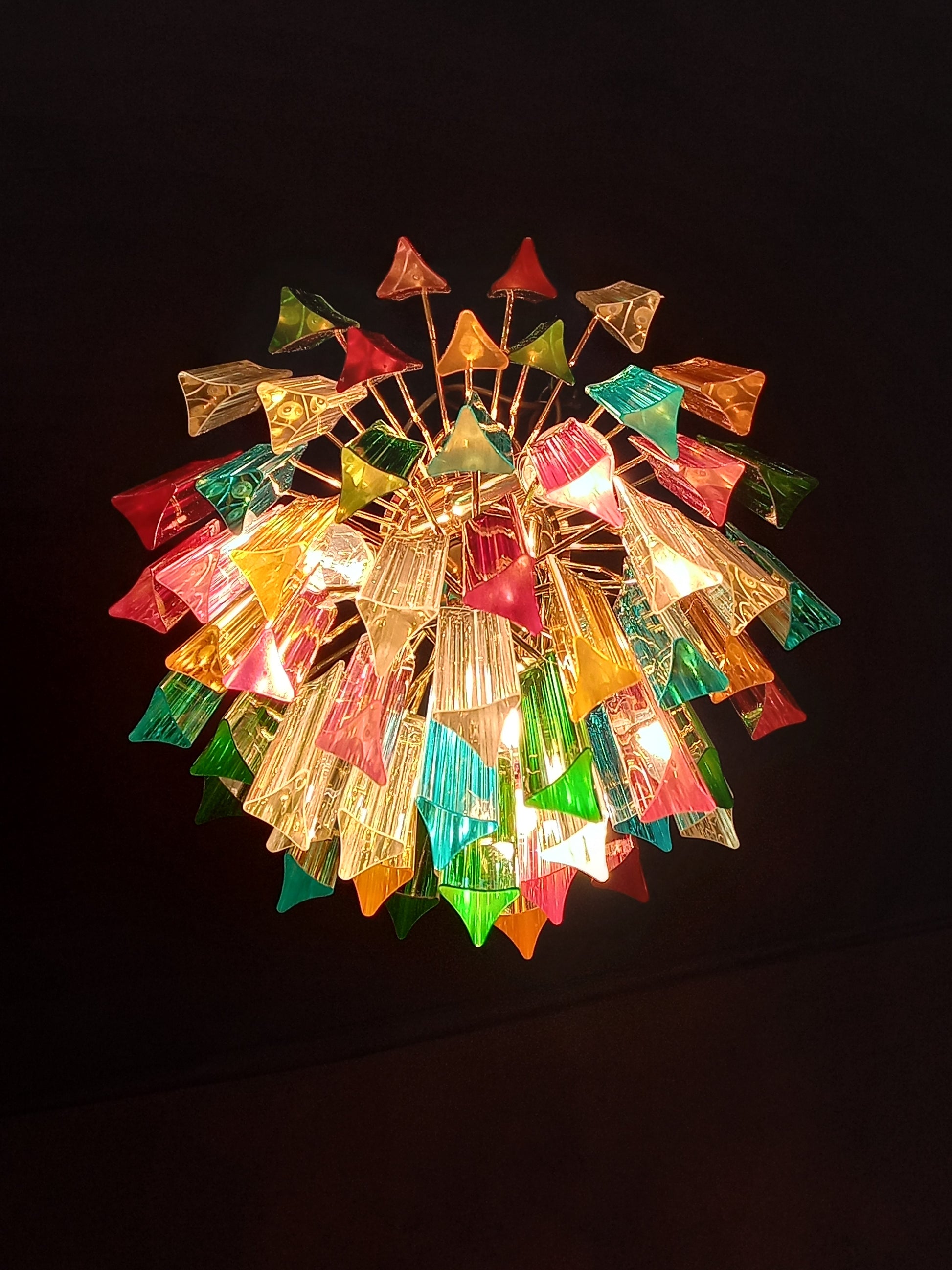 Lampadario di Murano con vetri triedri multicolore fatti a mano. Designed and made in Murano, Italy.
