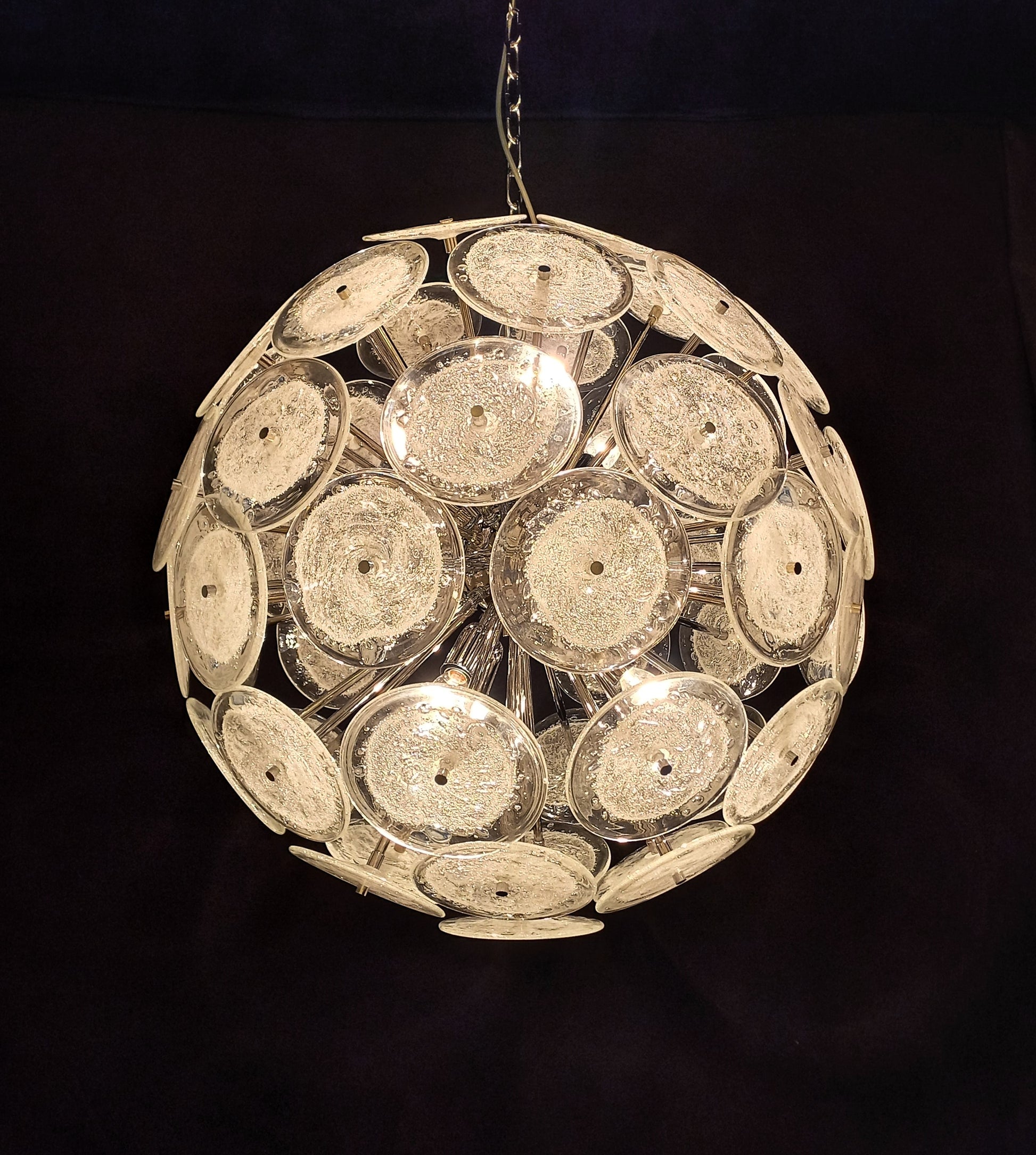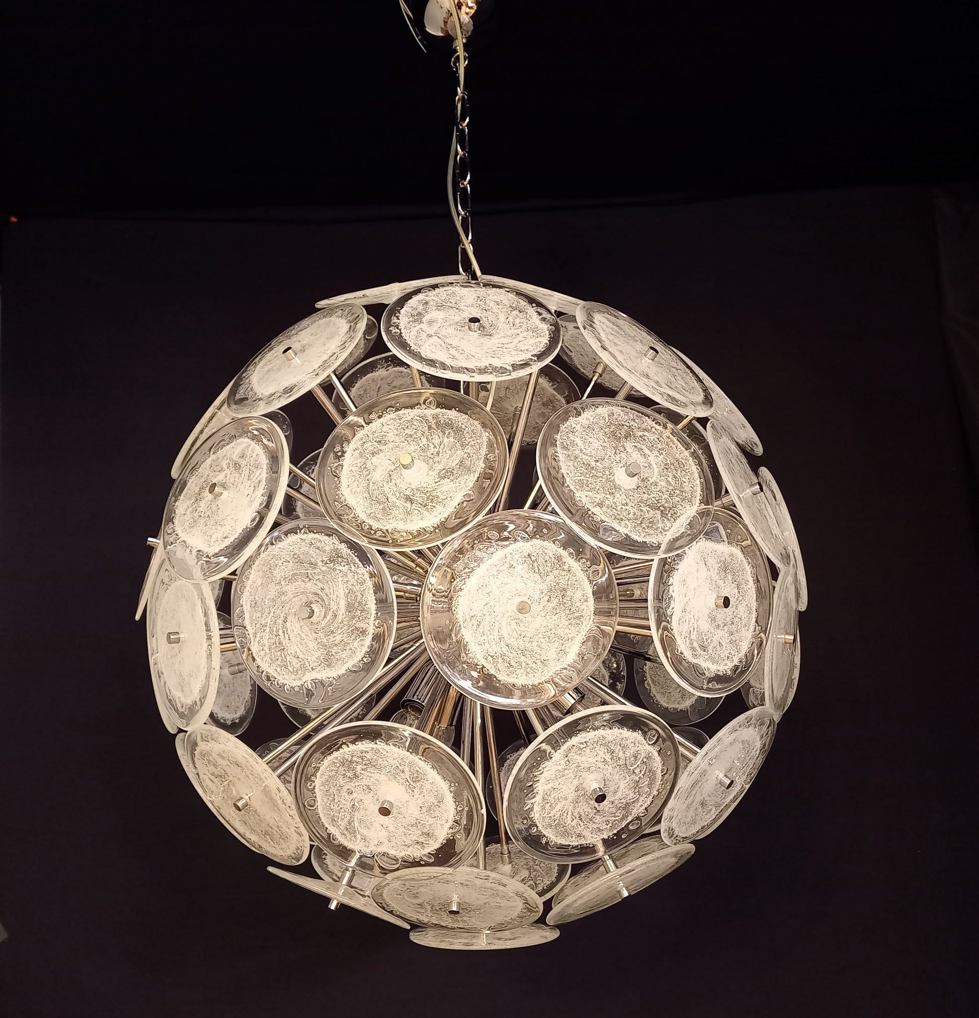 Lampadario Sputnik con vetri di Murano dischi pulegoso fatti a mano. Made in Murano, Venice