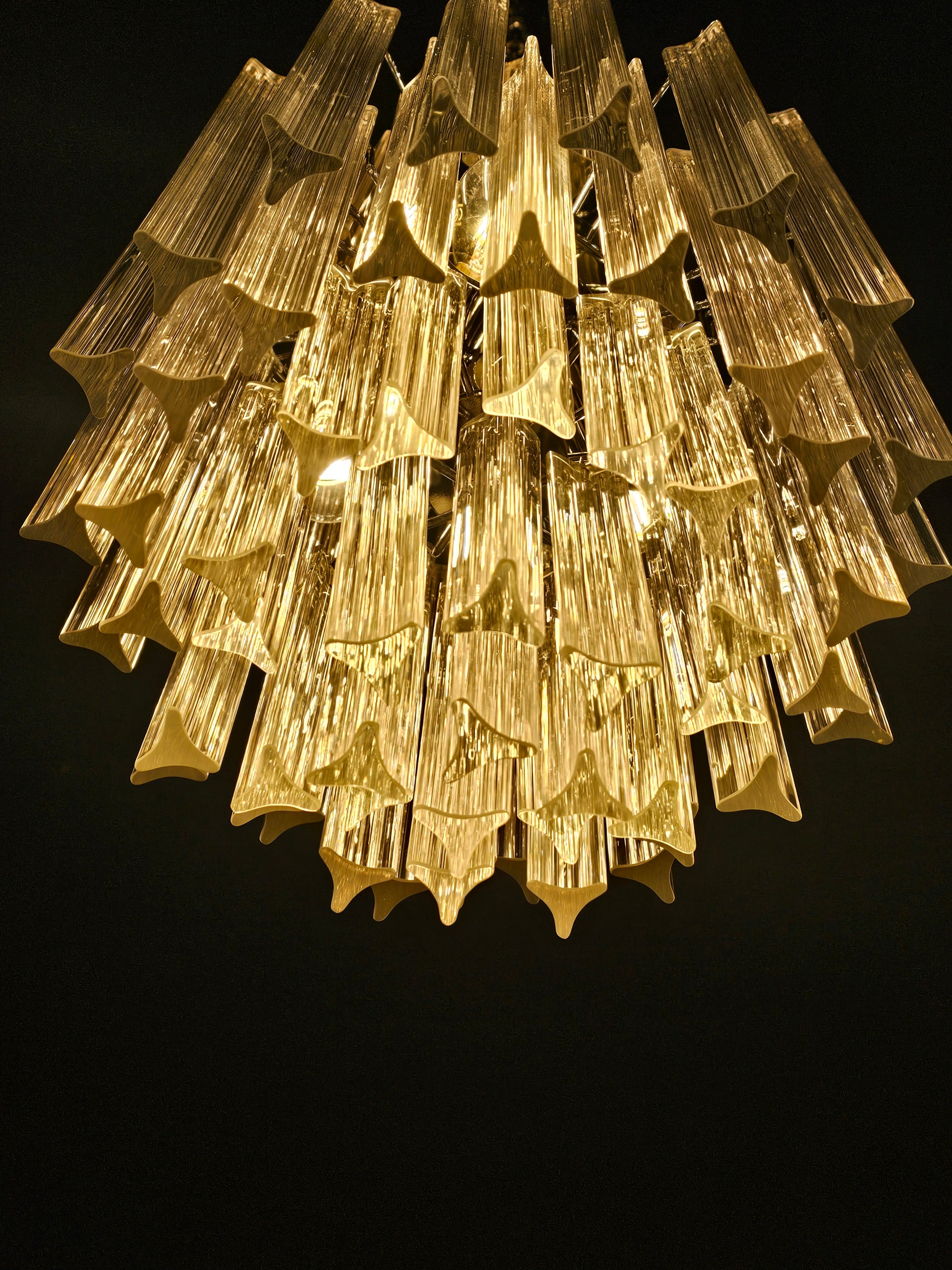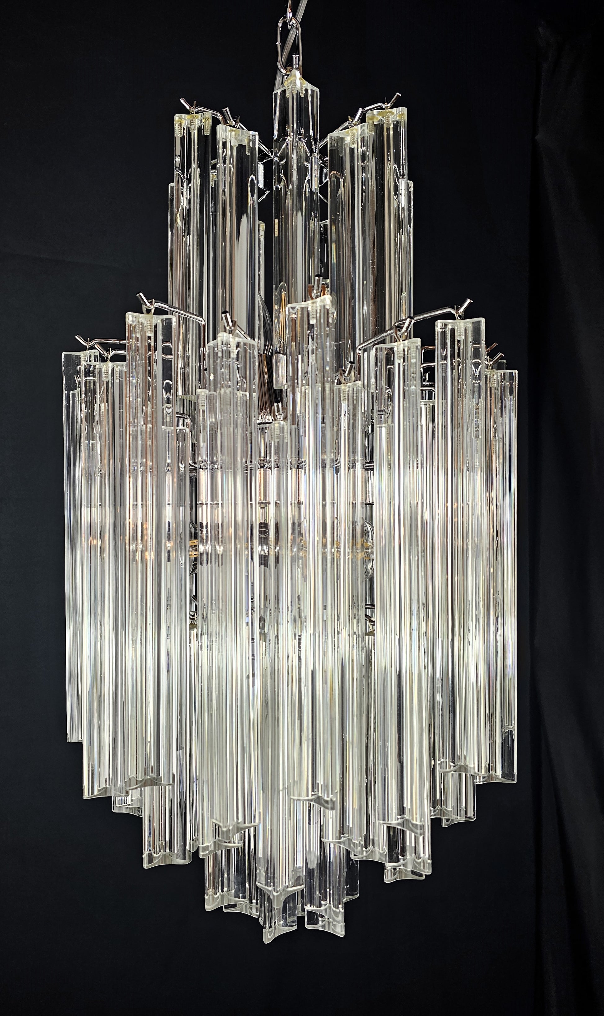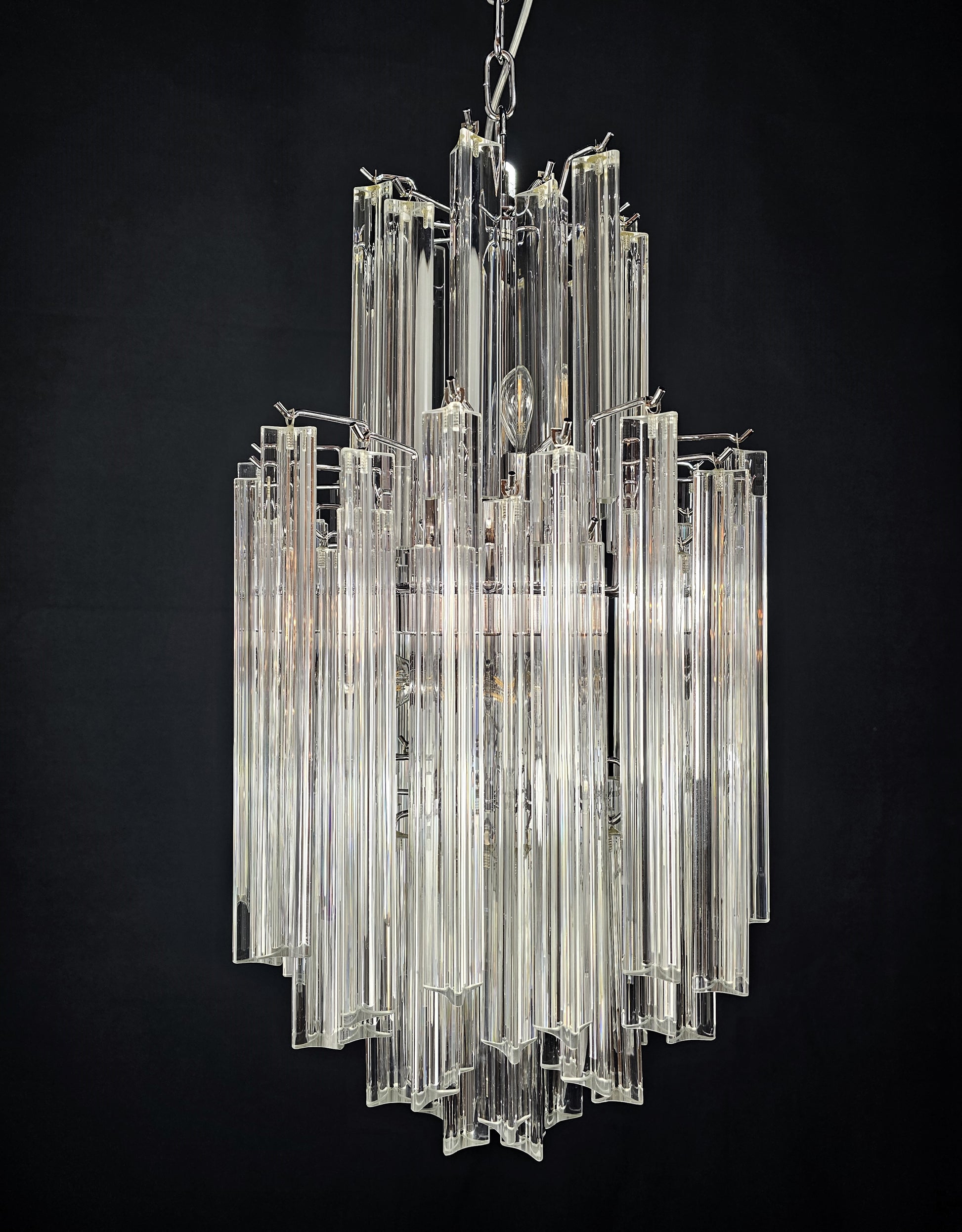 Lampadario Vintage di Murano, stile Venini, anni'70. Con vetri prismi triedri di Murano in cristallo. Designed and made in Venice Italy.