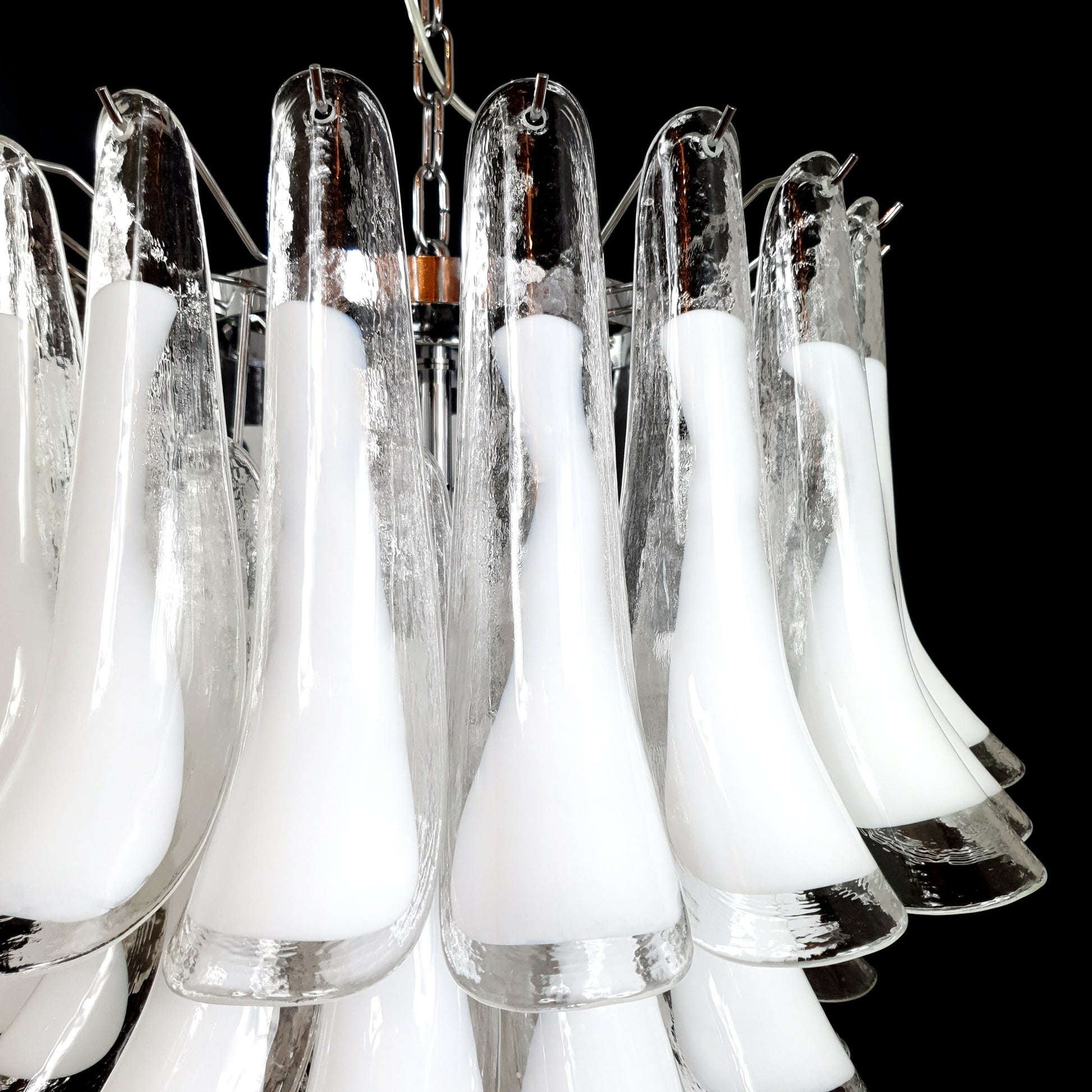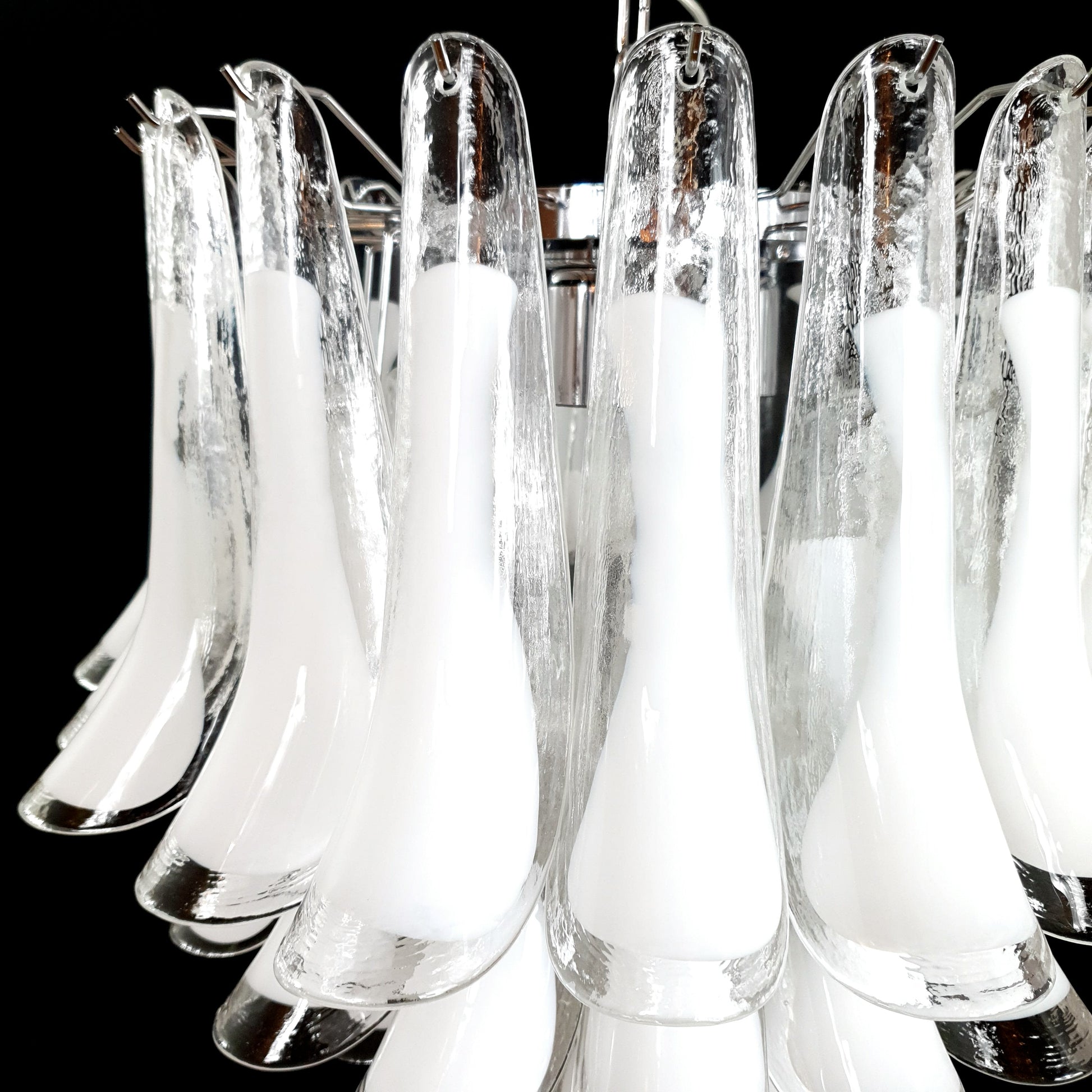 Lampadario Vintage Murano, stile Mazzega, anni'80. Vetri di Murano petali cristallo con anima bianco latte. Designed and Made in Italy.