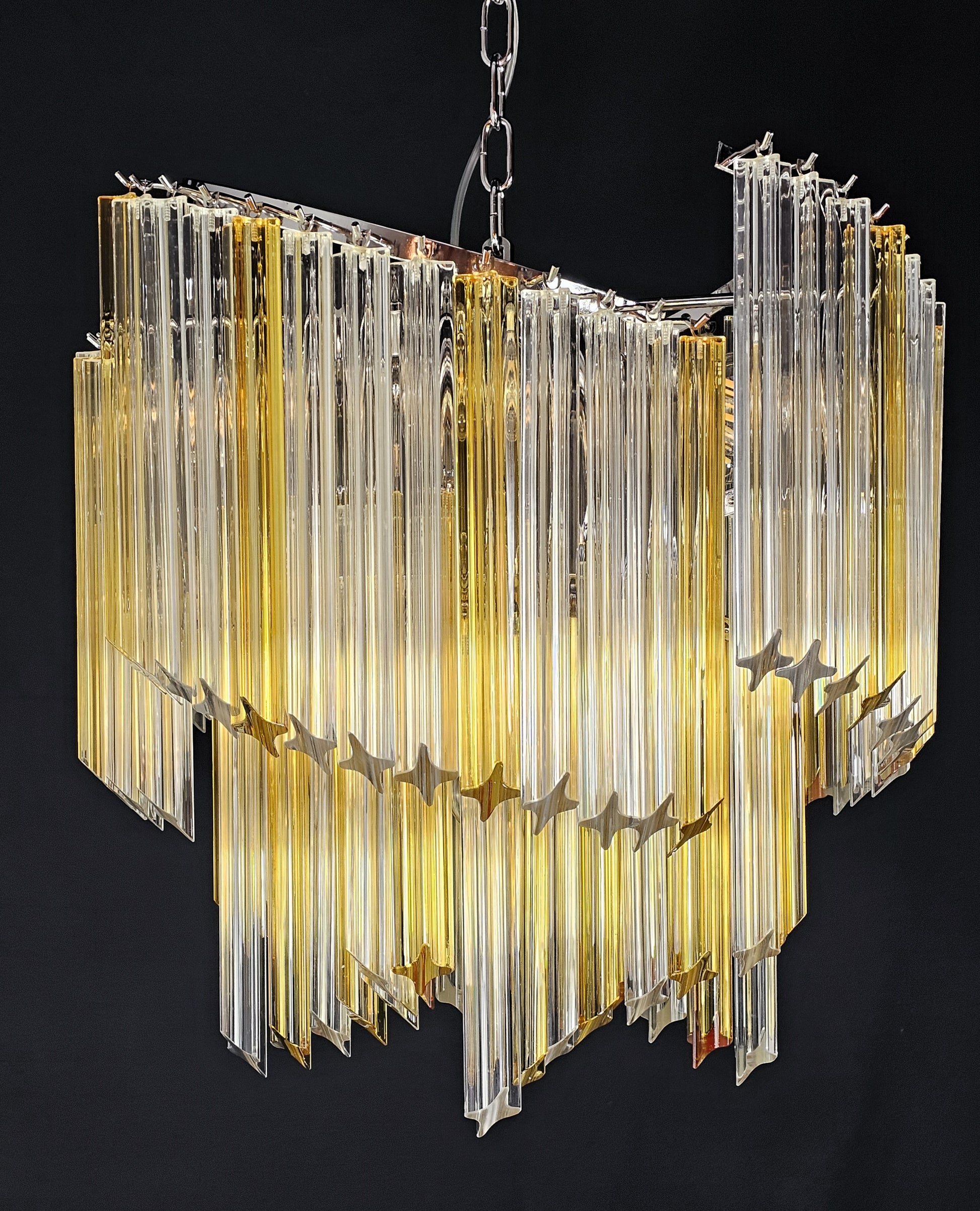 Lampadario Vintage Murano, stile Venini, anni'80. A ventaglio. Vetri prismi di Murano cristallo e ambra. Designed and Made in Venice,Italy.