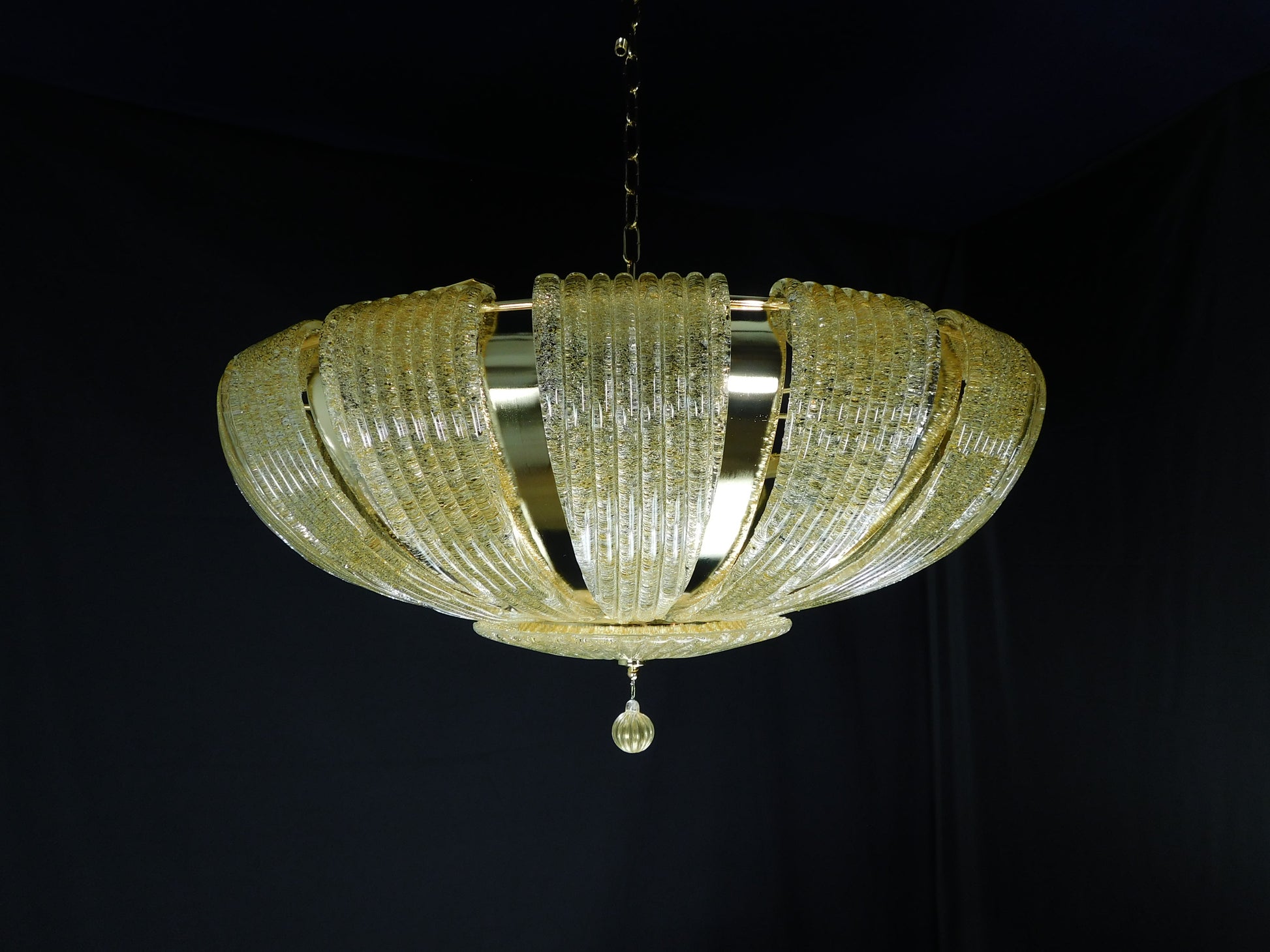 Plafoniera di Murano, stile saturno. Vetri di Murano fatti a mano in graniglia ambra. Raffinata e regale. Made in Venice,Italy