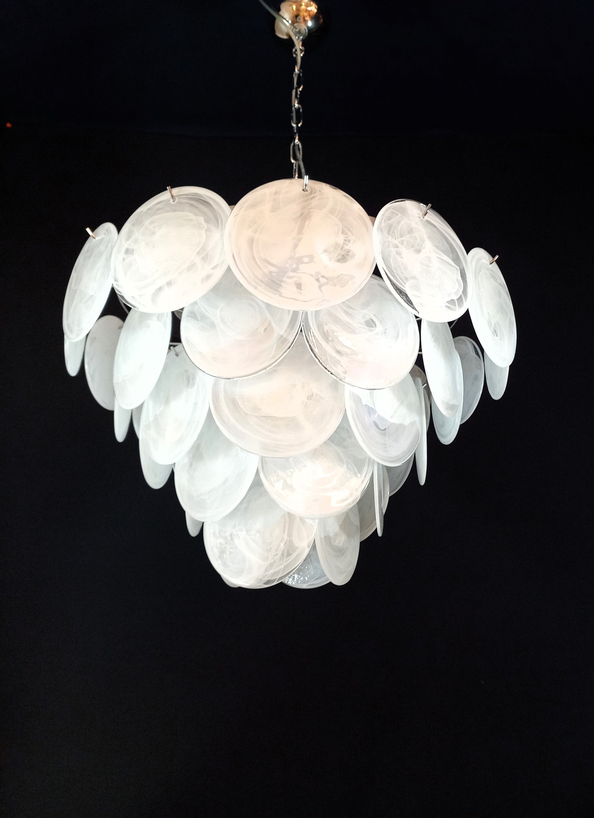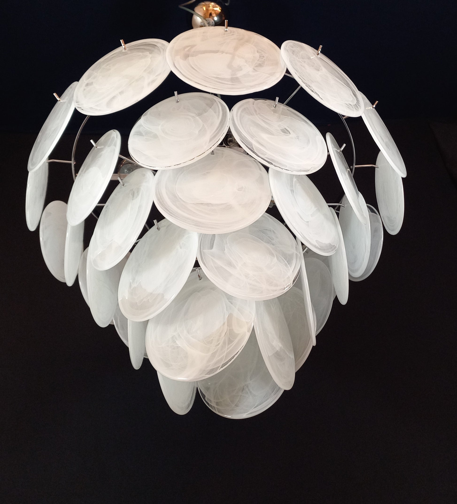 1981 Vintage Murano Disc Chandelier with handmade Alabaster Disc Glass, made in Murano, Venice, Italy